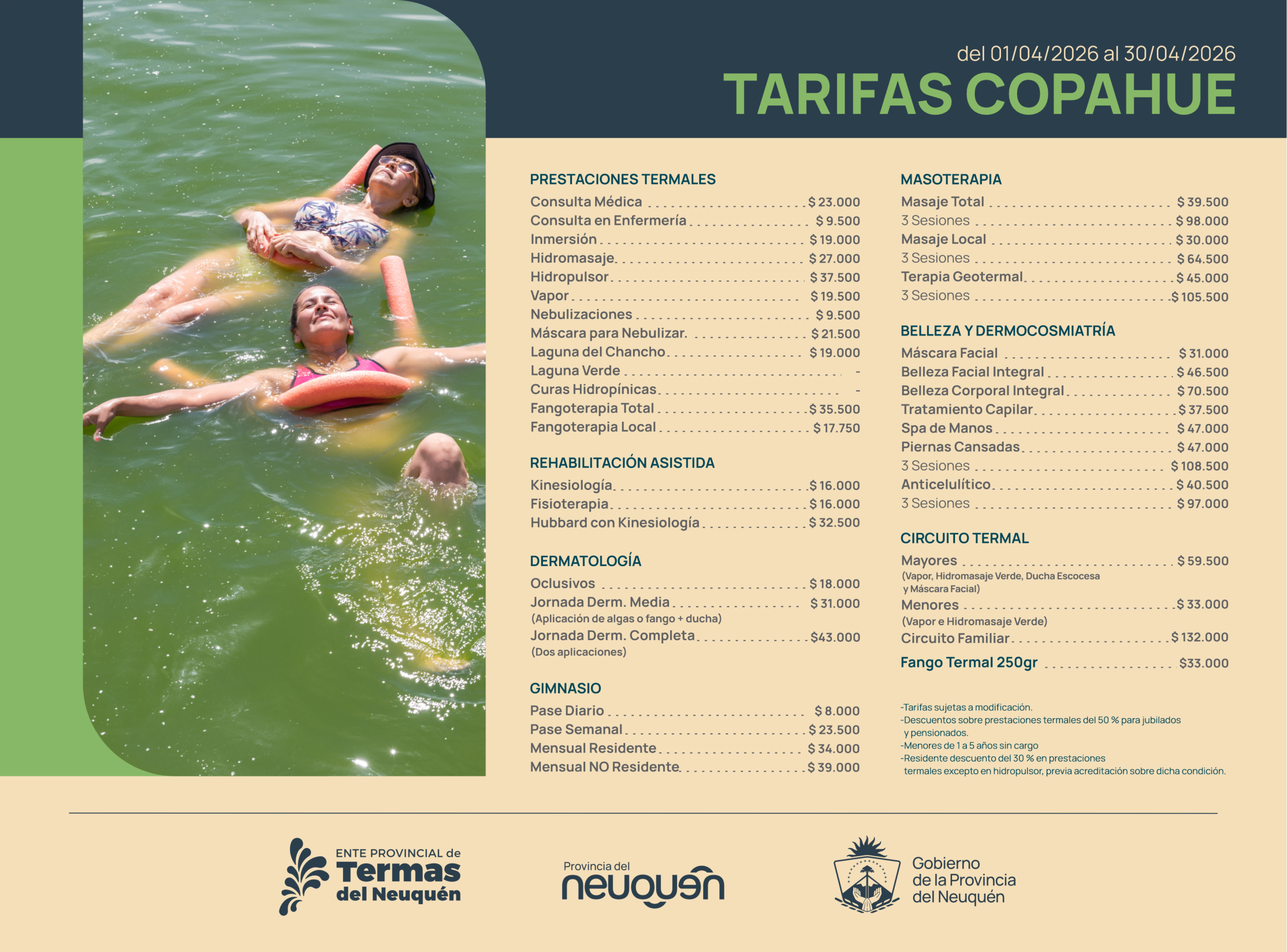Personas jubiladas y pensionadas tienen un 50% de descuento exclusivamente en prestaciones termales.